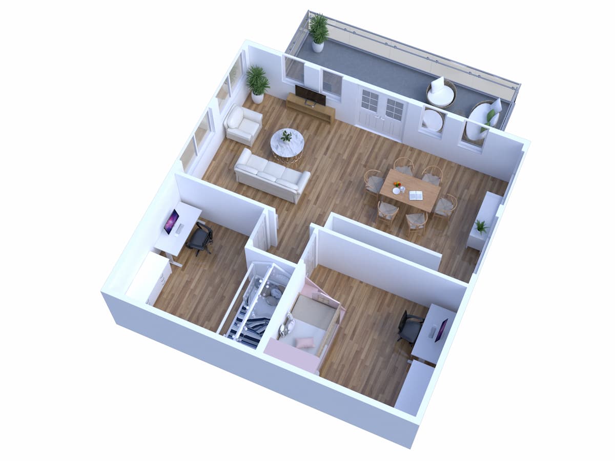 The kitset come complete with bespoke stairs & balustrade, all made from solid Nordic Spruce.
