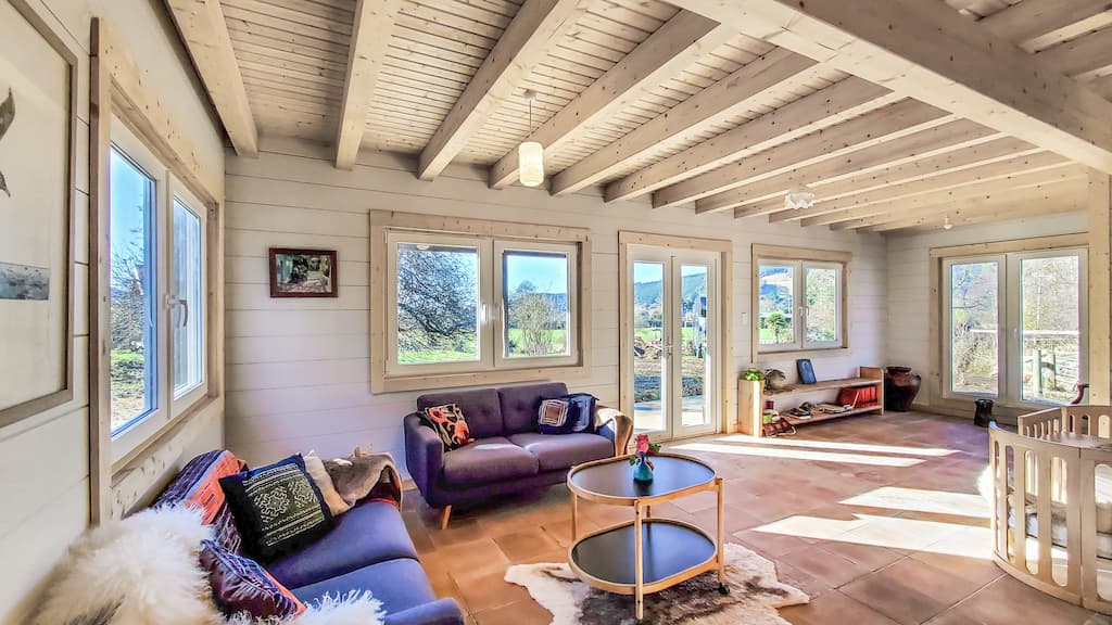 Constructed with 120mm thick wall planks & double glazed uPVC windows & doors.